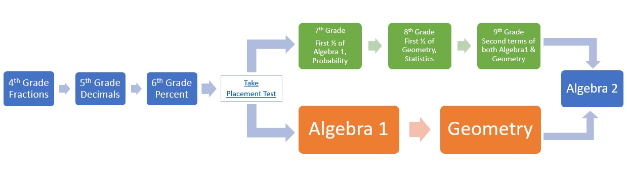 Students are ready for our upper level (Algebra 1 & Geometry) when they can add, subtract, multiply and divide both fractions and decimals, and are also fluent in ratios, proportion, and percent.